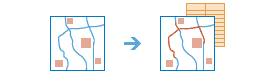 The Find Nearest task measures the straight-line distance, driving distance, or driving time from features in the analysis layer to features in the near layer, and copies the nearest features in the near layer to a new layer. Connecting lines showing the measured path are returned as well. Find Nearest also reports the measurement and relative rank of each nearest feature. There are options to limit the number of nearest features to find or the search range in which to find them.
